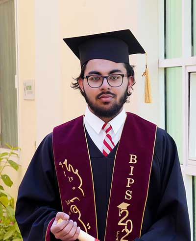 Graduating from BIPS gave me the skills, connections, and confidence I needed to grow. The years i have spent here have shaped me to become better and strive to become better every day, and the experience helped to build a strong foundation for the rest of my career as an aspiring Doctor and i hope the lessons ive learnt prove to be valuable for my future.